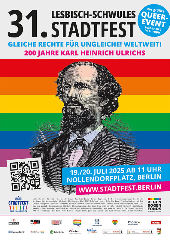 Lesbisch-schwules Stadtfest Stadtfestbühne Eisenacher-/Ecke Fuggerstraße Samstag, 19.Juli 2025 von 16 Uhr 30 bis 18 Uhr 15