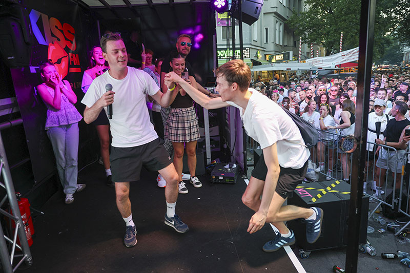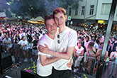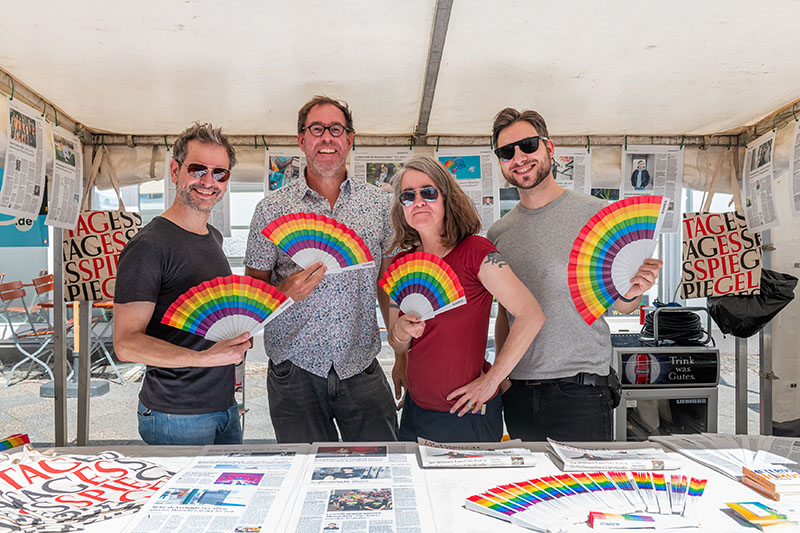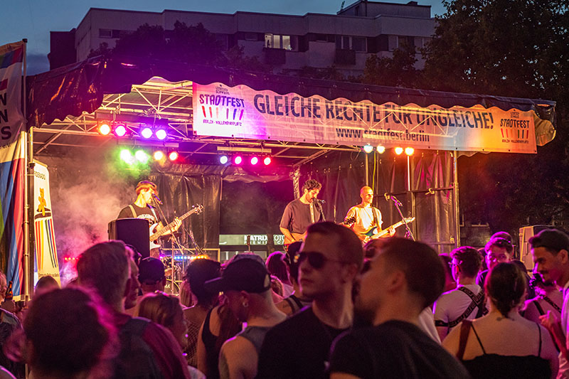 Auf dem Veranstaltungsgelände werden von gekennzeichneten Veranstaltungsfotografen Aufnahmen zur Dokumentation, Werbung und zur Veröffentlichung auf der Webseite "https://www.stadtfest.berlin" und auf der Facebookseite "https://de-de.facebook.com/LesbischSchwules.Stadtfest.Berlin" gefertigt. Mit Ihrer Teilnahme an der Veranstaltung erklären Sie sich mit der Veröffentlichung von Fotos einverstanden, auf denen Sie abgebildet sind. Dieses Einverständnis ist zeitlich nicht begrenzt.